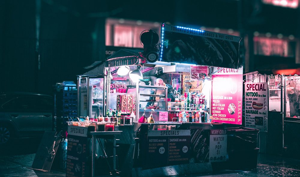 Black and Gray Food Stand During Nighttime